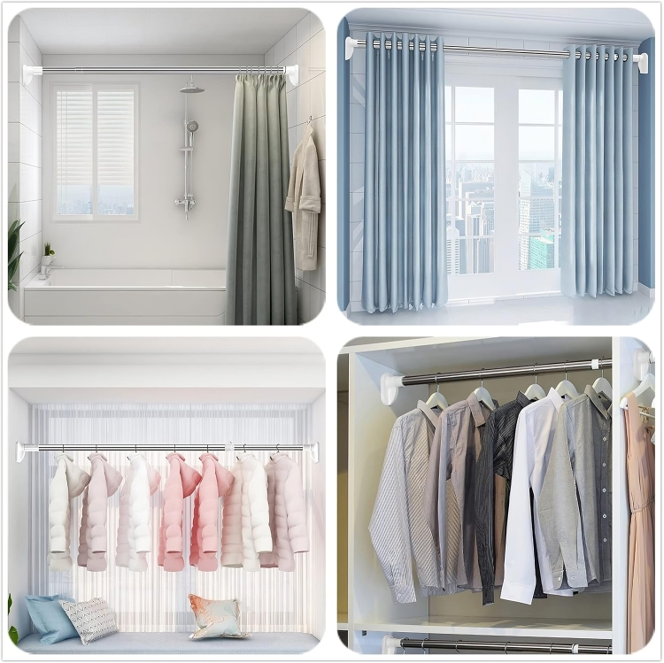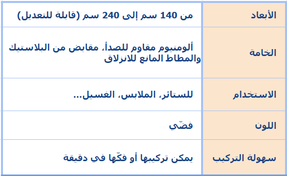 يمكن استخدامها لتعليق الملابس أو لتجفيف الغسيل أو كعصا ستارة في أي غرفة، مناسبة للغرف، للصالون، الحمام، أو حتى المطبخ.